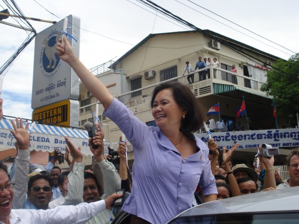 Die Oppositionspolitikerin Mu Sochua grüßt ihre Anhänger. (Foto: http://musochua.org/)