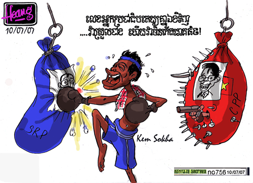 Aktueller denn je: So sah der Karrikaturist Sacrava bereits im Juli 2007 Kem Sokhas Absichten (© http://sacrava.blogspot.com/).