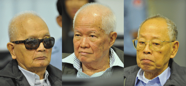 Müssen sich ab heute für ihre Taten verantworten (v. l. n. r.): Nuon Chea, Khieu Samphan und Ieng Sary. Fotos: ECCC