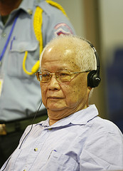 An anderer Stelle hatte ich mich bereits recht wohlwollend über Nuon Chea geäußert, der im Gegensatz zu seinen Co-Massenmördern immerhin Rede und Antwort steht. Dieses Bild bedarf allerdings einer Revision: Nuon Chea – hellwach und auf seine Weise hochintelligent –verschleppt, taktiert und manipuliert wo nur irgendwie möglich anstatt zur Wahrheitsfindung beizutragen. Unter den drei Angeklagten ist er zweifellos der Fitteste, das Gift, das in seinen Adern sprudelt, kann man quasi schmecken – trotz der penetranten Respektbekundungen den Richtern gegenüber. Über das Verhältnis der drei Angeklagten untereinander ist so gut wie nichts bekannt, aber man kann durchaus vermuten, dass man sich geeinigt hat, Nuon Chea den letzten Kampf der Roten Khmer hauptsächlich alleine führen zu lassen. Diese Taktik scheint nicht die uneffektivste zu sein, denn es geht ja nicht um Freispruch, sondern nur um Zeitgewinn, um durch den eigenen natürlichen Tod einem letztinstanzlichen Richterspruch aus dem Weg zu gehen. Oder um das Tribunal anhand seiner inneren Widersprüche und den es umgebenden politischen Rahmenbedingungen bersten zu lassen, das scheint insbesondere die Aufgabe von Anwalt Pestman zu sein.
