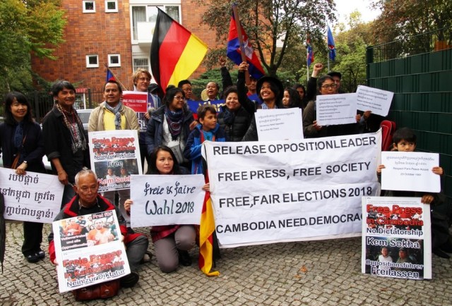 Aus dem ganzen Bundesgebiet sind am Wochenende Kambodschaner und Deutsche nach Berlin gereist, um gegen die Erosion liberaler und demokratischer Institutionen in Kambodscha zu demonstrieren. Insgesamt beteiligten sich mehr als 50 Personen – am Samstag zunächst vor der kambodschanischen Botschaft in Pankow, am Sonntag dann in Schöneberg, wo die Besucher des sogenannten Mekong-Ländertags von den Demonstranten auf die jüngsten Repressionen hingewiesen wurden. Und das war auch gut so, denn eigentlich hätte dieser Umstand nach dem Willen der Veranstalter totgeschwiegen werden sollen. Nur weiß niemand so genau, warum bei uns selbst kleinere Verstöße gegen die Political Correctness heftige Kritik nach sich ziehen können, Menschenrechtsverletzungen am Mekong für viele aber offenbar akzeptabel sind. Immerhin hat die Bundesregierung bereits am 4. September angekündigt, sich für die Freilassung von Kem Sokha einsetzen zu wollen. Das ist zumindest ein Zeichen, selbst wenn davon keine große Wirkung ausgehen sollte. Foto: LT